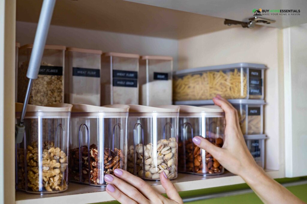 In addition to keeping your ingredients fresh, airtight containers add uniformity to your pantry. Keeping flour, sugar, and grains in matching containers makes them look tidier. Besides that, these containers help create an organized system where you can find items quickly.
