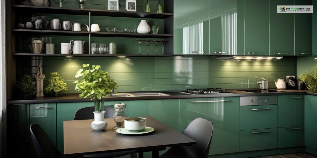 An elegant rustic or natural design theme would suit this pairing well. Ultimately, green cabinets enhance your kitchen’s overall warmth and coziness, making it a cozy retreat.