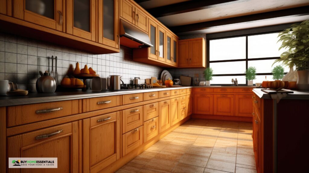 4. Warm Honey-Toned Cabinets