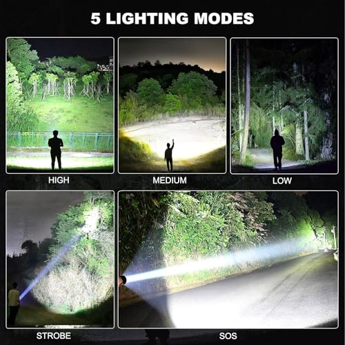 Specification: 4 Pack Rechargeable LED Flashlights High Lumens, 90,000LM Super Bright Flashlight, Adjustable Powerful Flash Light with USB Cable & 5 Modes, Waterproof Handheld Flashlight for Home Camping