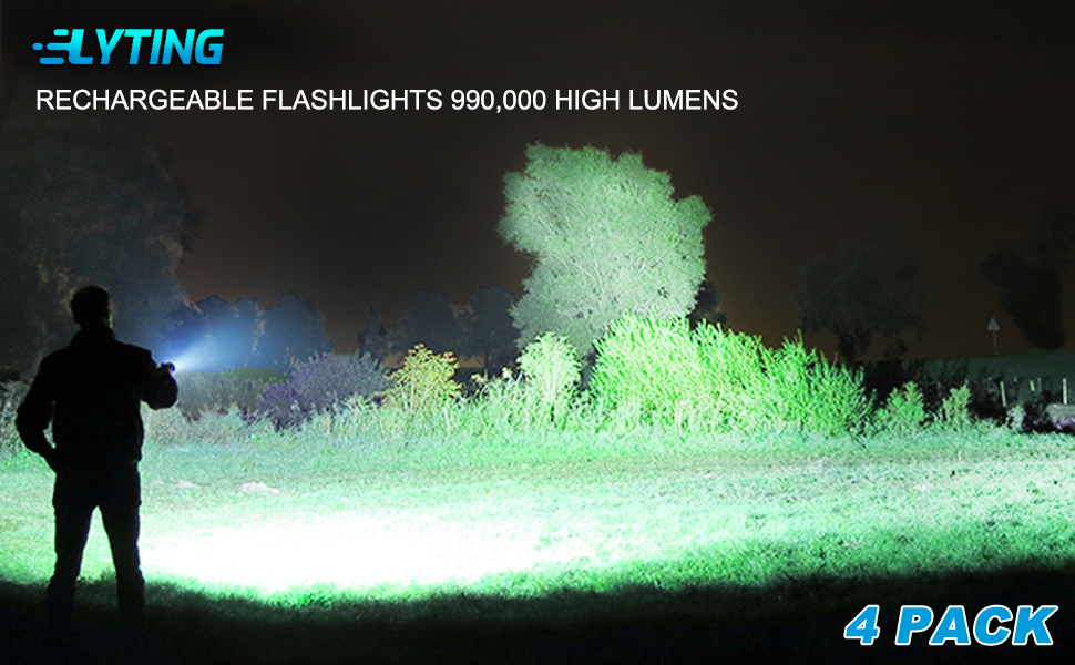 【90,000 Lumens Flashlight 4 Pack】Each Lylting high lumens flashlight chip is equipped with the newly developed technology, which uses the new upgraded p50 LED chips, providing 90,000LM light output.Irradiation distance up to 3280ft, suitable for long distance illumination and short distance illumination.