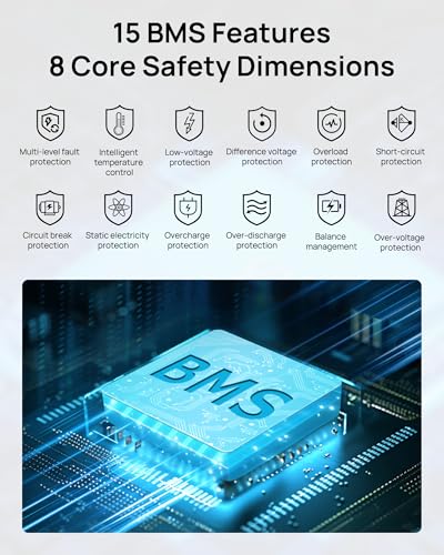 Reliable Safety Protection & Warranty: Advanced BMS ensures temperature control, overload, and short-circuit protection. Includes an LED flashlight (SOS mode), AC charging cable, and a 1-year warranty for peace of mind.