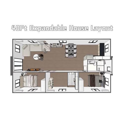 Specification: Portable Prefabricated Tiny Home for Sale, 40ft FoldableTiny House to Live in for Adults with 3 Bedrooms, 1 Full Equipped Bathroom & Kitchen, Expandable Container House Mobile Prefab Modular Home