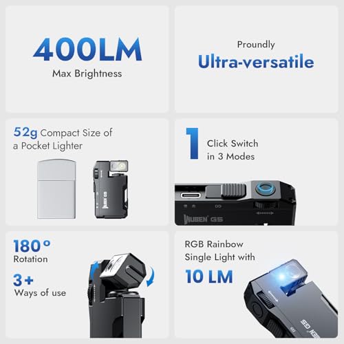 Specification: WUBEN G5 Rechargeable EDC Flashlight, 400 Lumens Dual Light Sources Mini Flashlight with RGB Light, Portable Flat Pocket Flashlights, Magnetic Keychain Flashlight for Outdoor Home Emergencies (Black)